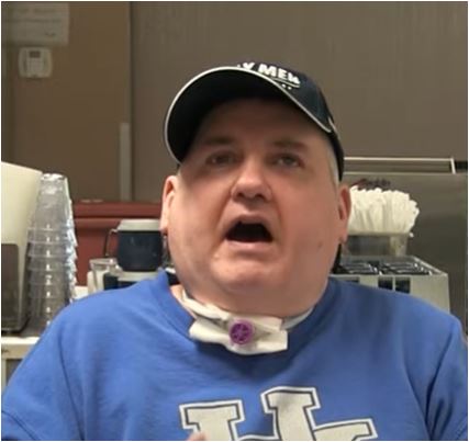 My brother Donnie is a resident at Thomson-Hood Veterans Center in Wilmore, Kentucky. At Thomson-Hood, they produced a YouTube video called “I AM.” Residents and caregivers were told to complete the sentence “I am…” Donnie is wearing a blue UK shirt, a UK hat, and says “I am Thomson-Hood ROCK STAR.” I am so proud of him.
