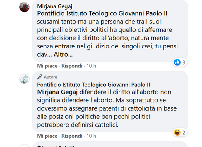 In response, the Pontifical Theological Institute profile said that “defending the right to abortion does not mean defending abortion.”