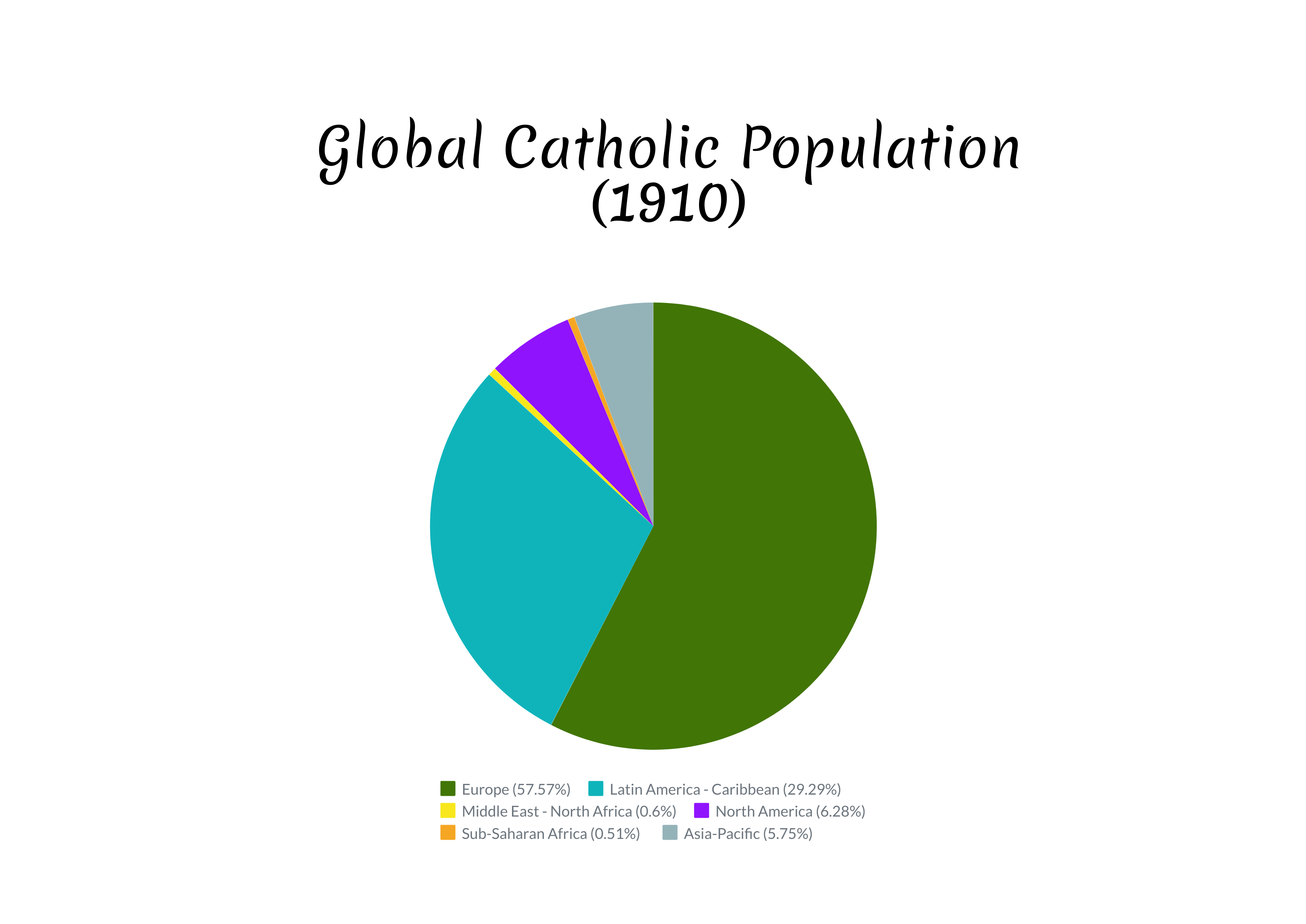 Below are graphs of the global Catholic population in 1910 and 2010.
