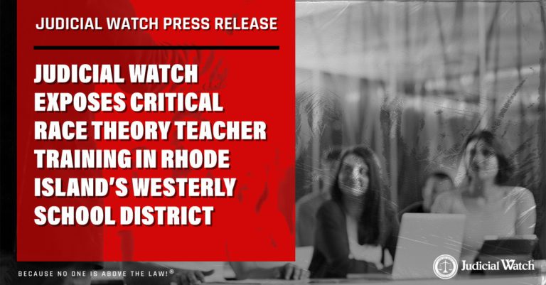 (Washington, DC) Judicial Watch announced today that it received a 53-page training document from a whistleblower in the Westerly School District of Rhode Island which details how Westerly Public Schools are using teachers to push critical race theory in classrooms.