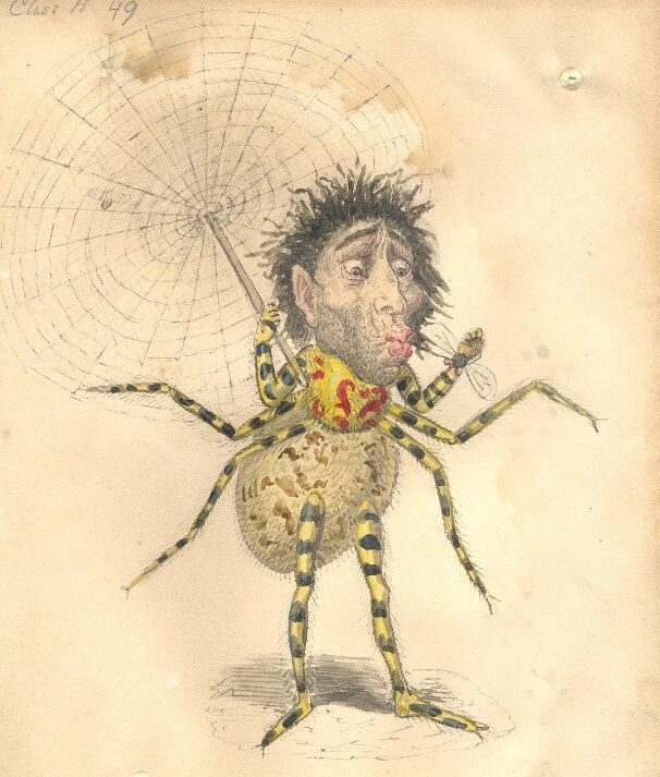 Featured Image: Spider costume designed by Charles Briton for the “Missing Links” theme, Mistick Krewe of Comus, 1873: Carnival Collection, Louisiana Research Collection, Tulane University — Source