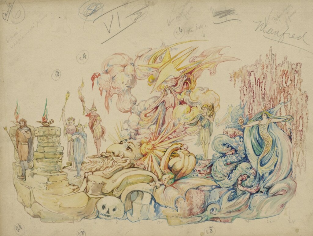 “The Vision of Manfred” float design by Jennie Wilde for the “Byron” theme, Knights of Momus, 1902: Carnival Collection, Louisiana Research Collection, Tulane University — Source