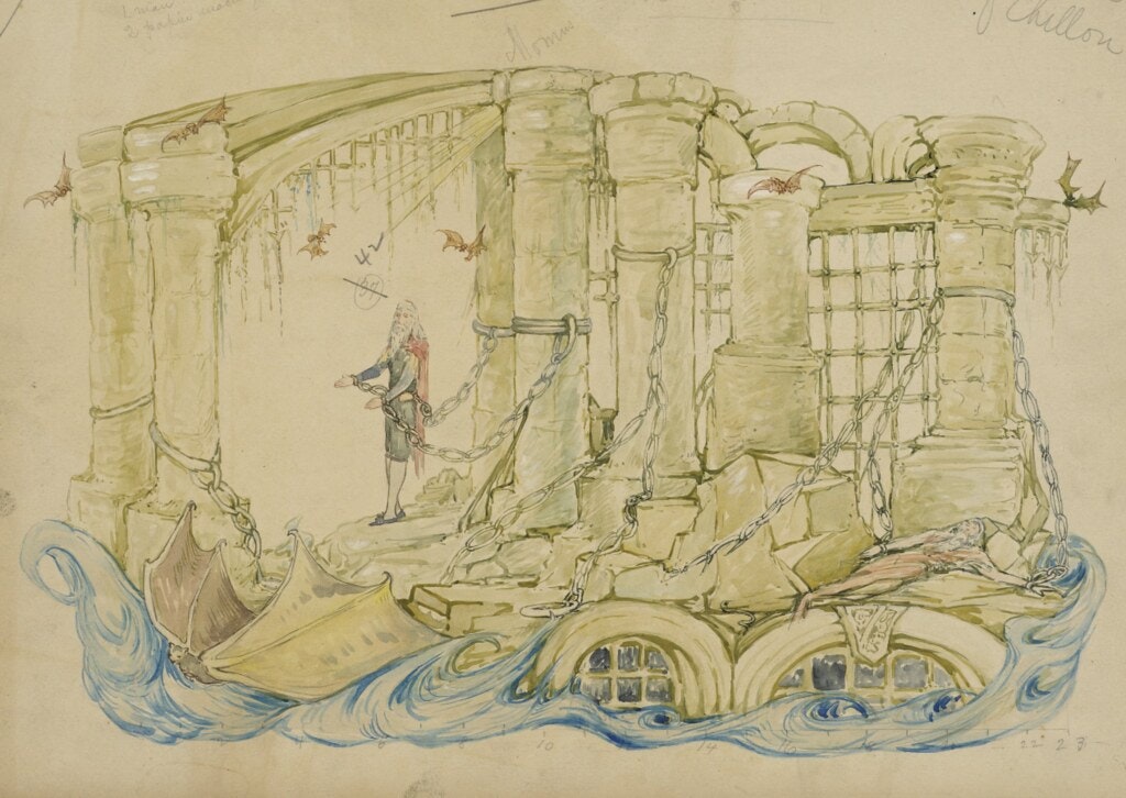 “The Prisoner of Chillon” float design by Jennie Wilde for the “Byron” theme, Knights of Momus, 1902: Carnival Collection, Louisiana Research Collection, Tulane University — Source