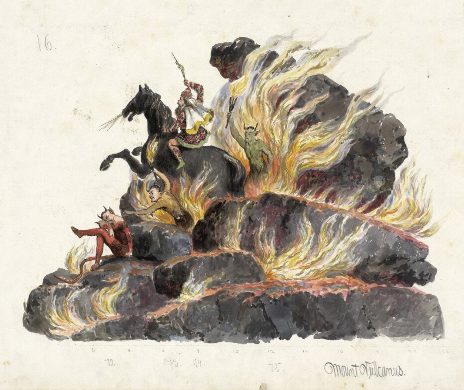 “Bayard escapes from Mount Vulcanus” by Carlotta Bonnecaze for the “Legends of the Middle Ages” theme, Krewe of Proteus, 1888: Carnival Collection, Louisiana Research Collection, Tulane University — Source