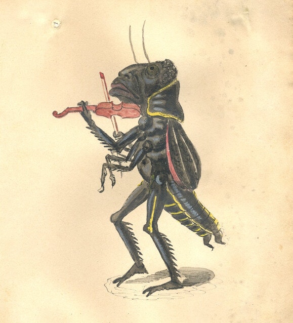 Grasshopper costume designed by Charles Briton for the “Missing Links” theme, Mistick Krewe of Comus, 1873: Carnival Collection, Louisiana Research Collection, Tulane University — Source