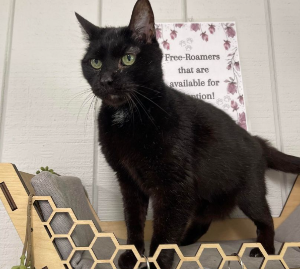 Midnight Moon was a black cat with soft fluffy fur and squinty green eyes. But there was something different about him, he had no teeth. He was a bit of a mystery to the other cats in the shelter but they would always welcome him with open paws, and Midnight Moon loved to curl up next to them in the sun at the window.